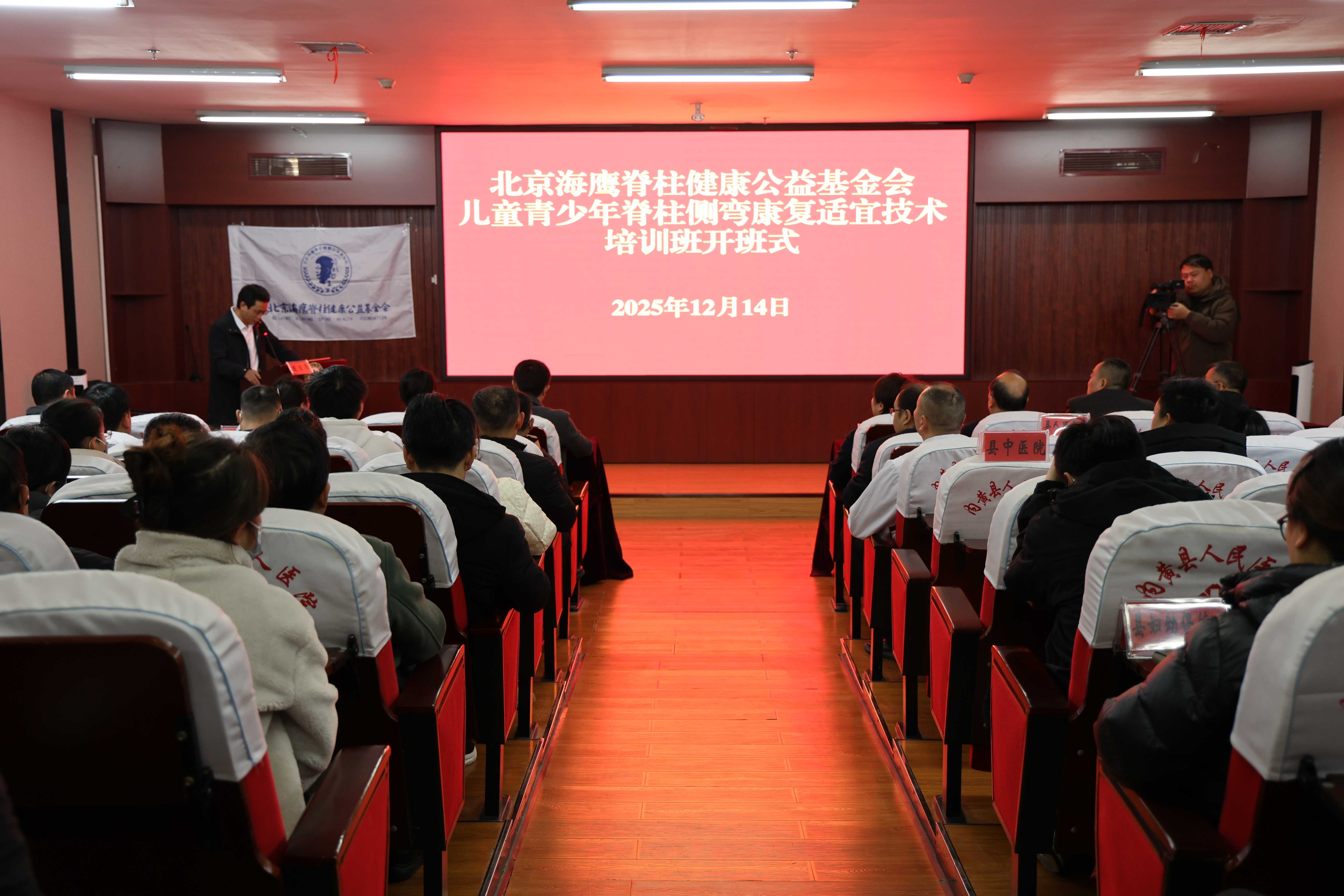 12月14日,由内黄县人民医院携手北京海鹰脊柱健康公益基金会联合举办的儿童青少年脊柱侧弯康复适宜技术培训班,在内黄县人民医院门诊五楼电教室顺利开班。北京海鹰脊柱健康公益基金会专家团队、内黄县卫健委副主任王彦龙、县人民医院党委书记桑会利、院长张书军、医院领导班子成员、相关科室骨干及县域内各医疗机构的业务精英齐聚一堂,共赴这场聚焦青少年“脊”健康的学术盛会。