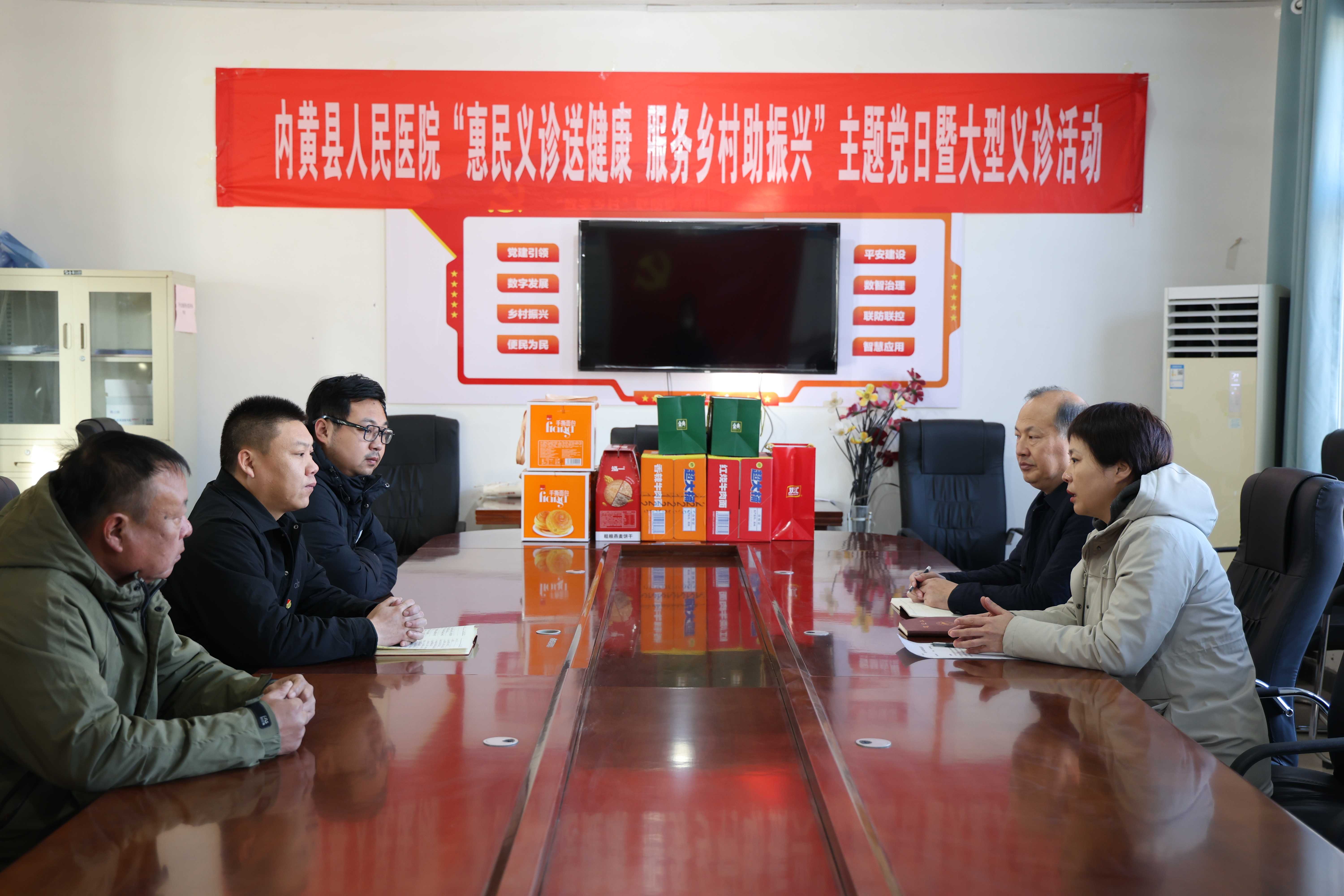医院领导班子与井店镇领导、齐村村两委干部展开深度交流。会议听取了驻村第一书记关于近期驻村工作进展的汇报,重点围绕基层医疗需求、后续帮扶计划、产业培育等进行深入研讨。桑会利书记充分肯定了目前帮扶工作取得的成效,并对持续推进乡村振兴提出了指导意见。她表示,驻村干部要进一步提高政治站位,紧密围绕乡村振兴中心工作,结合帮扶村实际,深化精准驻村帮扶,在农技赋能、人才支持、特色产业培育等方面持续发力,以务实举措推动乡村集体经济发展,为扎实推进乡村全面振兴贡献医院力量。