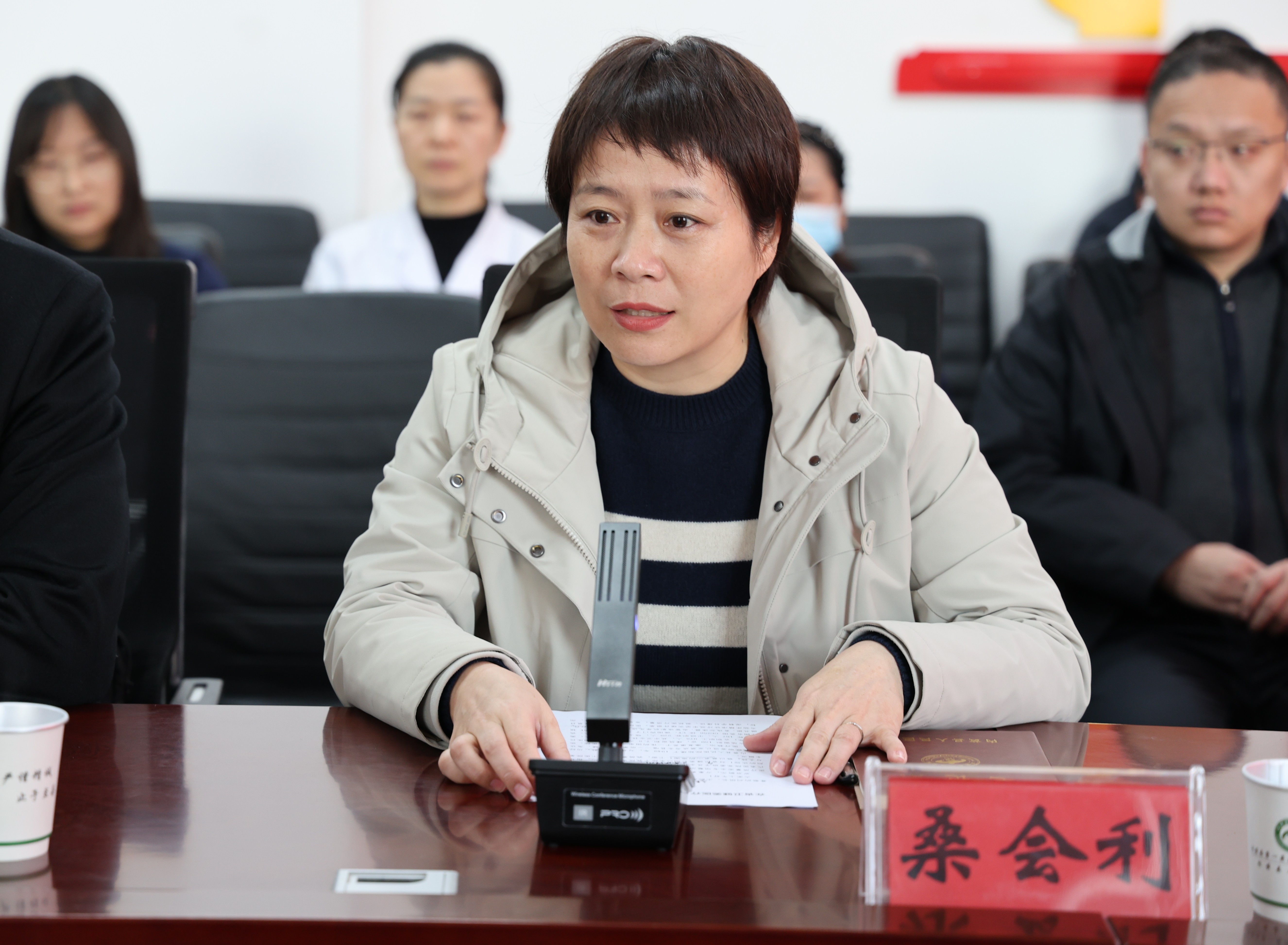 医院党委书记桑会利致辞。她对检查组的莅临指导表示热烈欢迎和衷心感谢,并表示,医疗质量安全是医院发展的生命线,此次省卫健委组织开展医疗质量安全专项整治检查,既是对我院工作的全面检验,更是帮助我们找差距、补短板、促提升的宝贵契机。一是如实全面汇报,客观精准呈现医院在医疗质量安全管理方面的各项工作举措与成效;二是全力做好保障,妥善配合完成资料调取、现场核查、人员访谈等各项检查环节,确保检查工作顺利推进;三是诚恳接纳指导,对检查组指出的问题照单全收、深刻剖析,立行立改并举一反三;四是健全长效机制,以此次检查为新起点,持续完善医疗质量安全管理体系,推动医院高质量发展迈向新台阶。